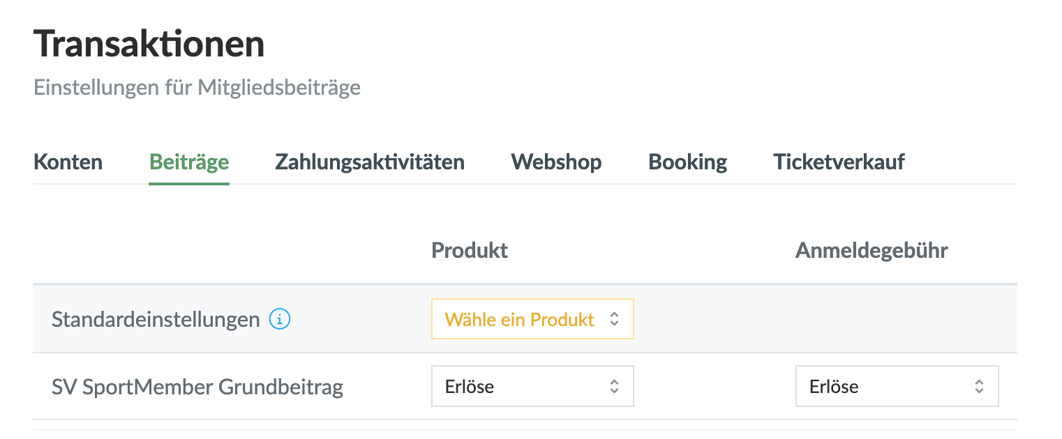 - Wechseln Sie dann zu den Registerkarten Mitgliedschaften, Zahlungsaktivitäten, Online-Shop, Buchung und Ticketverkauf und verknüpfen Sie die zuvor erstellten Produkte mit den entsprechenden Kosten.
